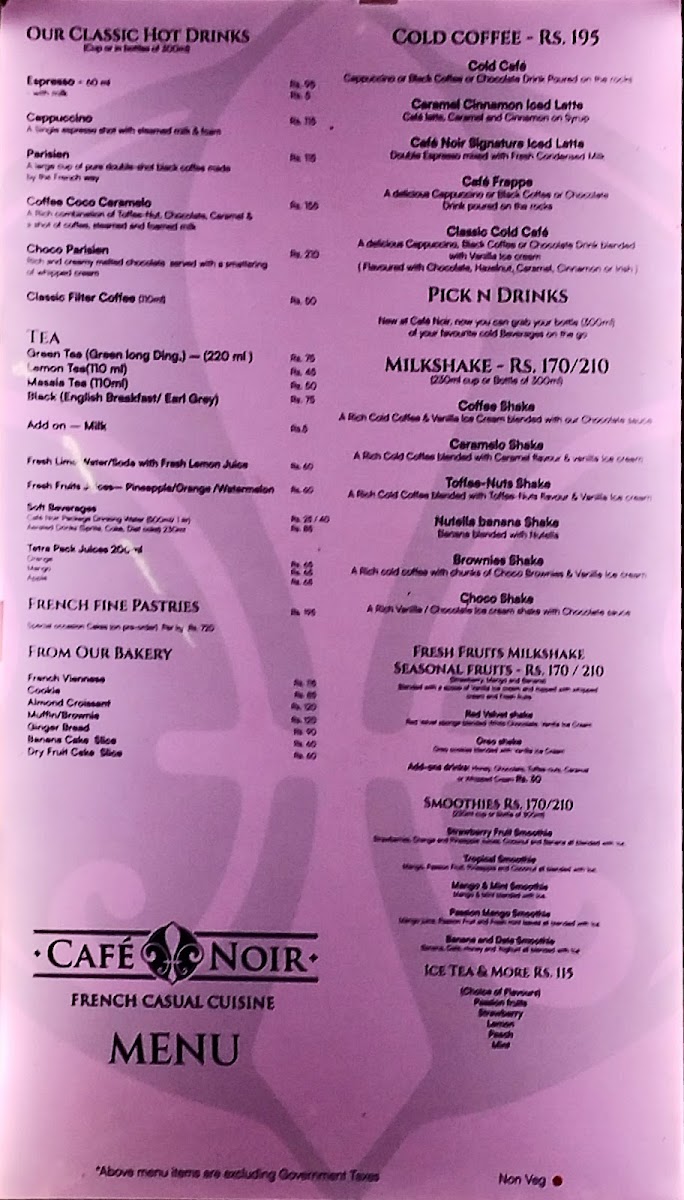 Introducing the menu at Cafe Noir Cargo